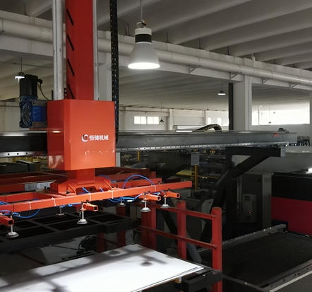 Herochu’s automatic material handling manipulator eliminates many of these manual transfers. When positioned strategically, a single manipulator can serve multiple machines. For example, a manipulator placed between a storage rack and a laser cutter can load raw plates directly. After cutting, the same manipulator (or a second unit) can unload the skeleton and transfer cut parts to a downstream press brake. This reduces work-in-progress inventory and shortens throughput times.