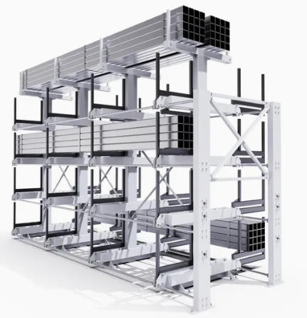 The teardrop design and adjustable beams allow for efficient use of space, maximizing storage capacity while maintaining easy access to items. The roll-out cantilever racking option is ideal for storing long materials like bar stock, angle iron, and tube, saving valuable warehouse space.