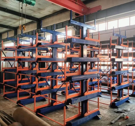 Heavy-Duty Adjustable Pipe Cantilever Shelves – Ideal Storage Solutions for Steel Tubes & Profiles in Industrial Warehouses