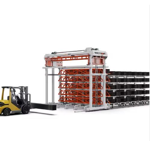 The Vertical Storage Tower addresses this through continuous support architecture. Each storage level incorporates multiple adjustable arms that extend beneath the entire material length, distributing weight evenly and eliminating stress concentration points. These arms automatically adjust their positions based on material length specifications, ensuring optimal support whether storing 6-meter aluminum extrusions or 12-meter steel pipes. The tower’s main structure uses reinforced steel columns connected by horizontal bracing that resists both vertical loads and lateral forces generated during gantry movements.