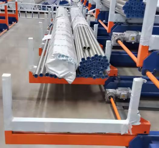 Traditional cantilever racks are a massive improvement over floor stacking, but they still present a significant logistical hurdle: the “drive-in” requirement. To access a bundle of pipes at the back of a static rack, a forklift operator must often navigate narrow aisles, potentially disturbing or damaging adjacent stock. For high-purity materials like electropolished 316L tubing, this is a disaster waiting to happen. Every time a fork blade slides between bundles, it risks scratching the surface, rendering the material scrap under strict industry standards like ASME BPE .