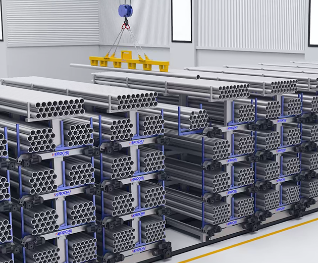 For profiles and bars—which often have delicate surfaces or precise dimensions—the arms provide rigid support without the crushing pressure of stacked materials. Because each level moves independently, there is no dragging of metal against metal when retrieving a mid-level bar. The material simply sits on the extended arms, waiting for the overhead crane or forklift to lift it straight up and out.