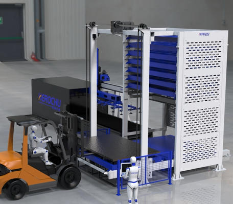 Sheet Metal Material Storage with Integrated Loading – Herochu Compact Tower Series